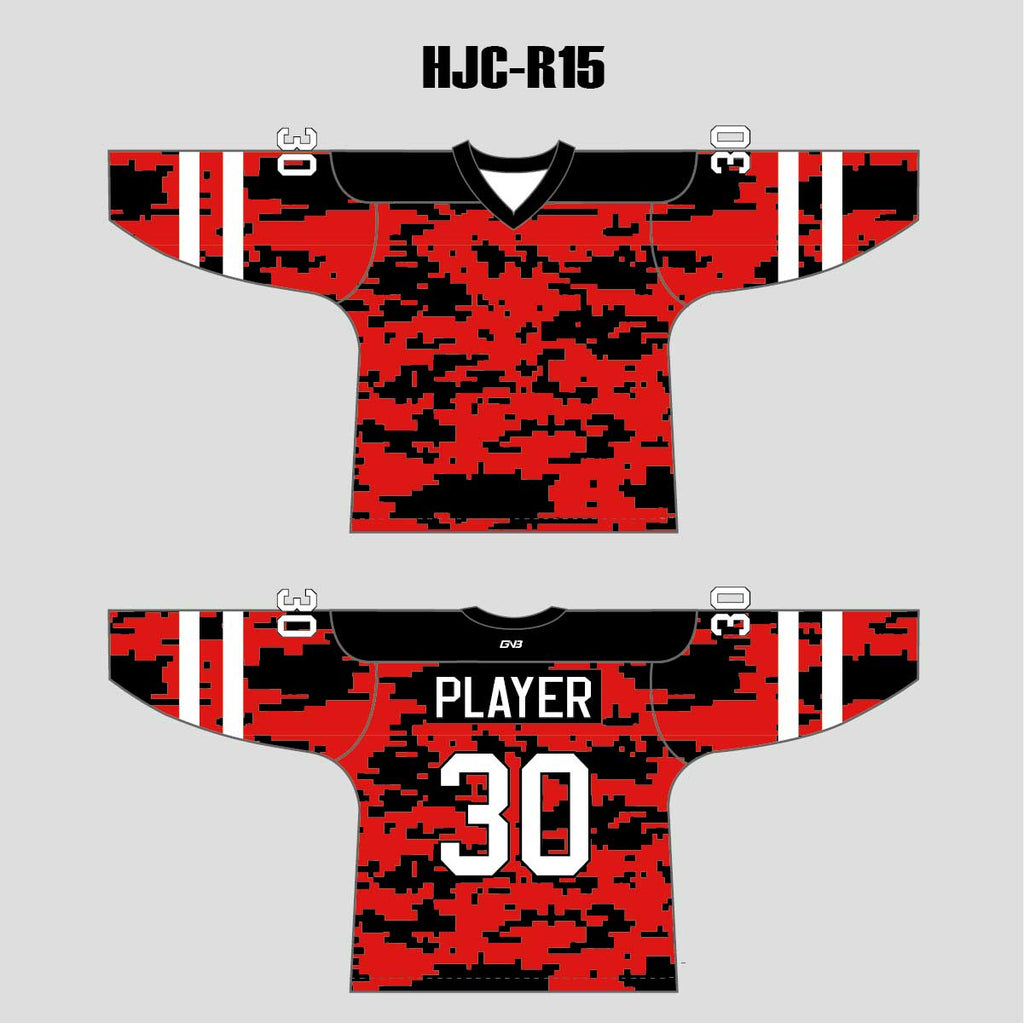 Red Black Camouflage Custom Sublimated Hockey Jerseys