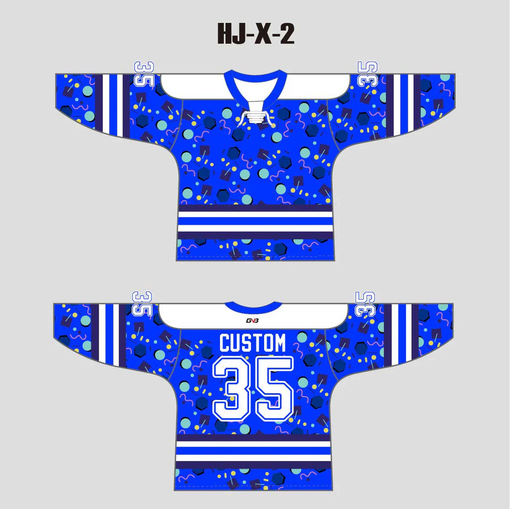 HJX2 Geometric Shapes Pattern Royal Blue Custom Hockey Jerseys with Laces
