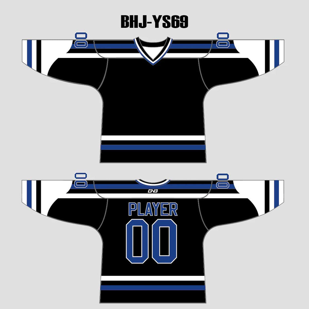 YS69 Black/White/Blue Custom Ice Roller Hockey Jerseys Design