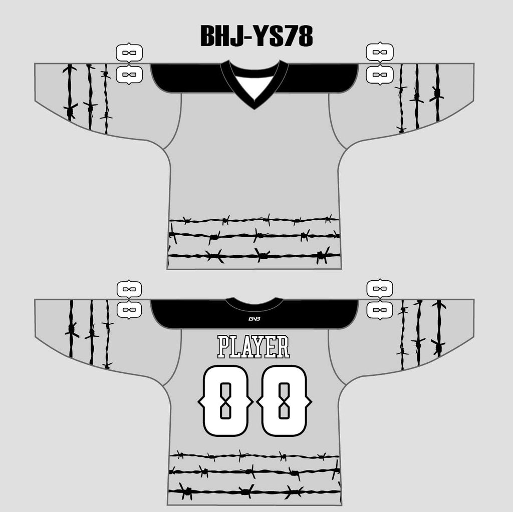 YS78 Grey/Black Sublimated Custom Blank Ice Roller Hockey Jerseys